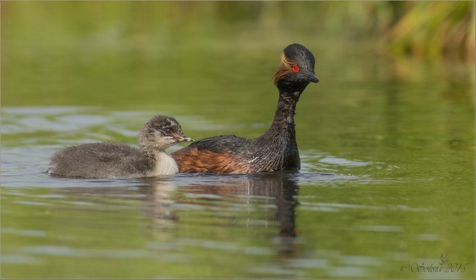 Красношейная поганка с птенцами