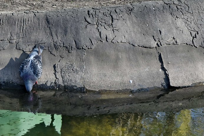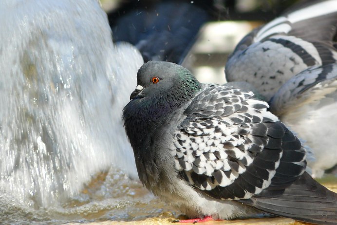 Сизый голубь пьет воду