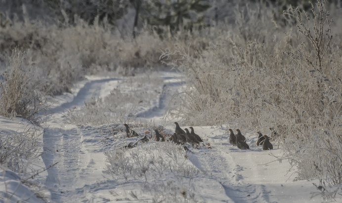 Куропатки зимой стая