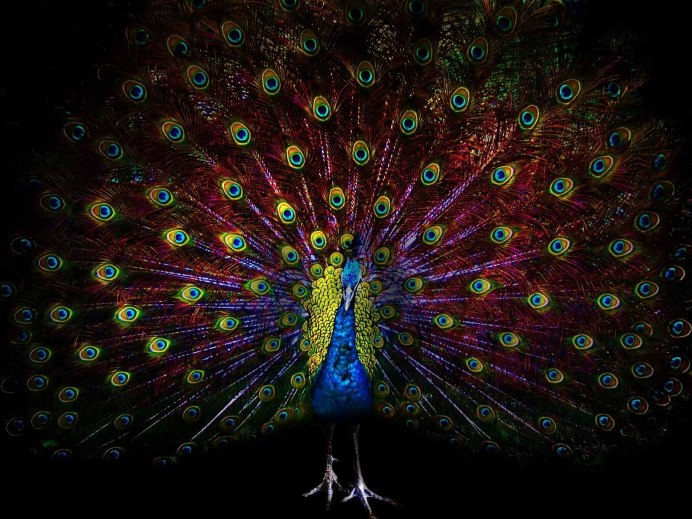 Павлин на черном фоне