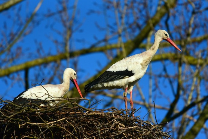 Пара аистов в гнезде
