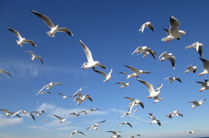 Стая чаек над морем