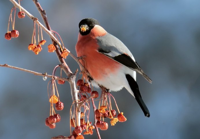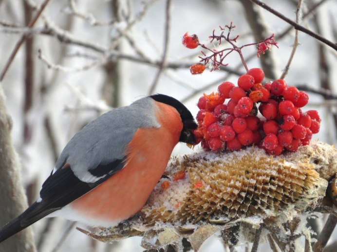 Снегири на рябине зимой