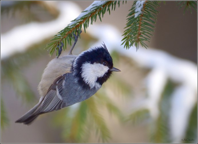Хохлатая синица фото птицы зимой