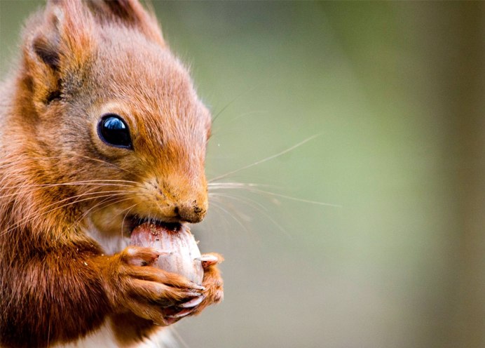 Белка с орешками во рту