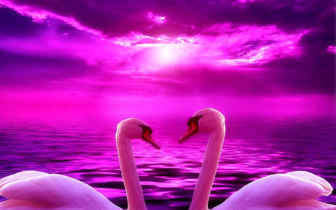 Лебеди на розовом фоне