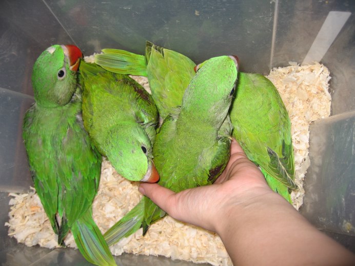 Птенцы ожерелового попугая