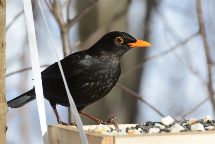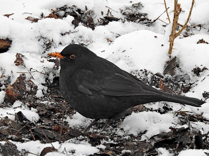 Черный Дрозд птица зимой