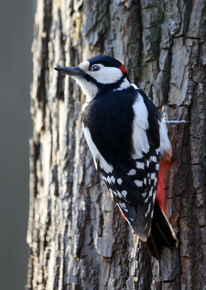 Большой пёстрый дятел оперение