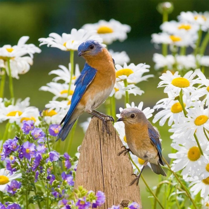 Красивые птицы на цветах
