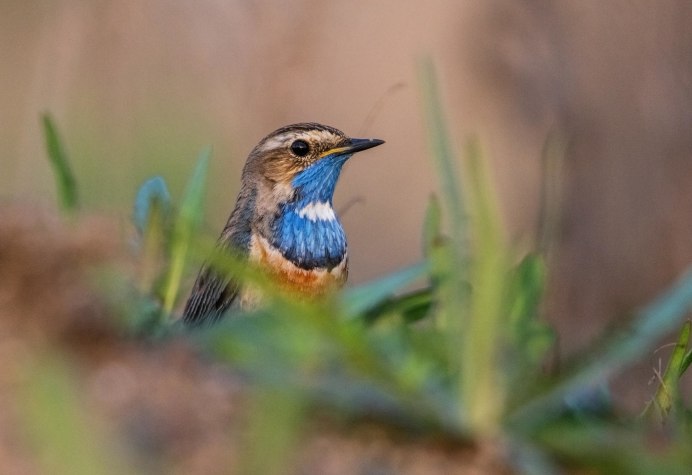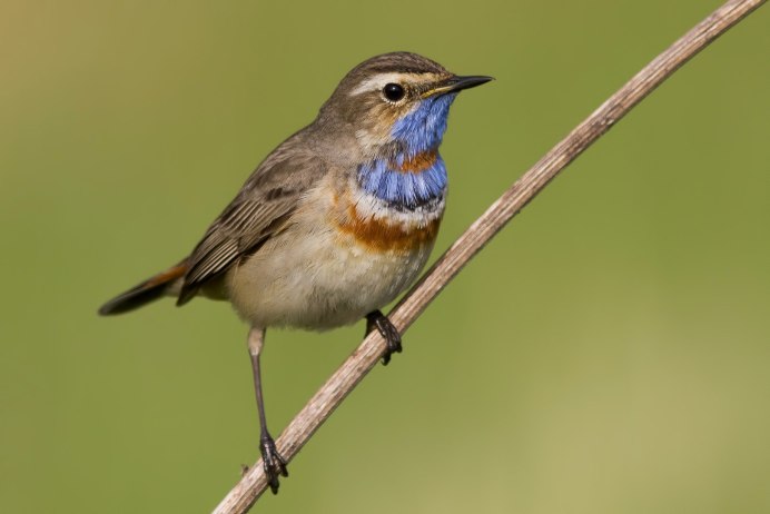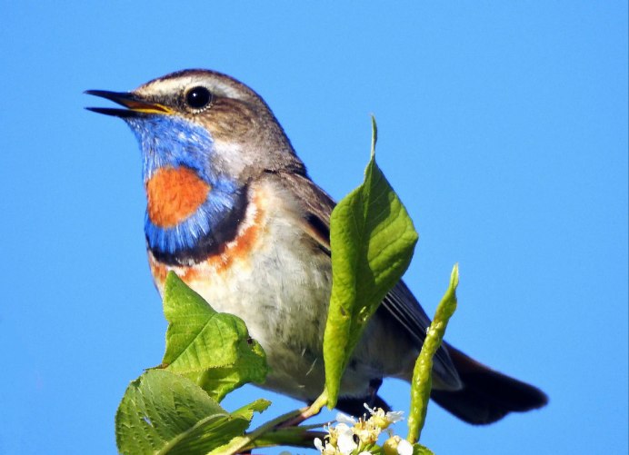 Птичка варакушка с синей грудкой