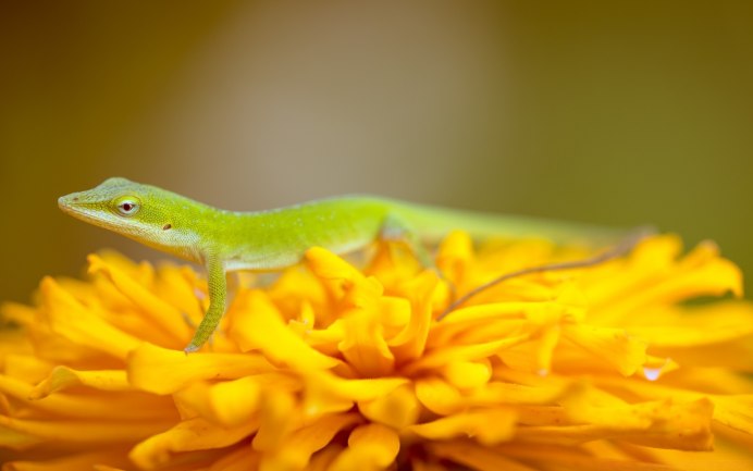 Хамелеон на желтом листе