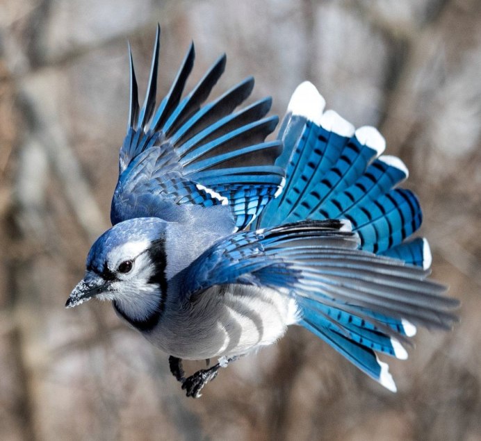 Серая птица с синими крыльями