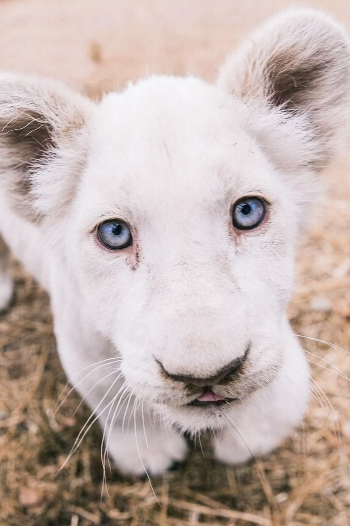 Лев альбинос с голубыми глазами
