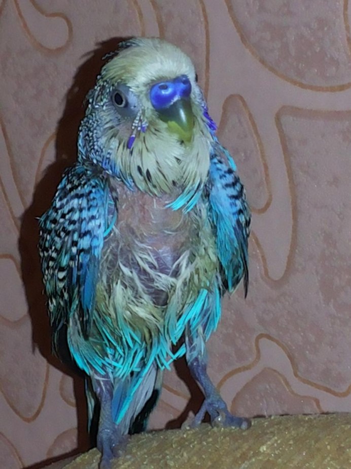 Ощипанный волнистый попугай