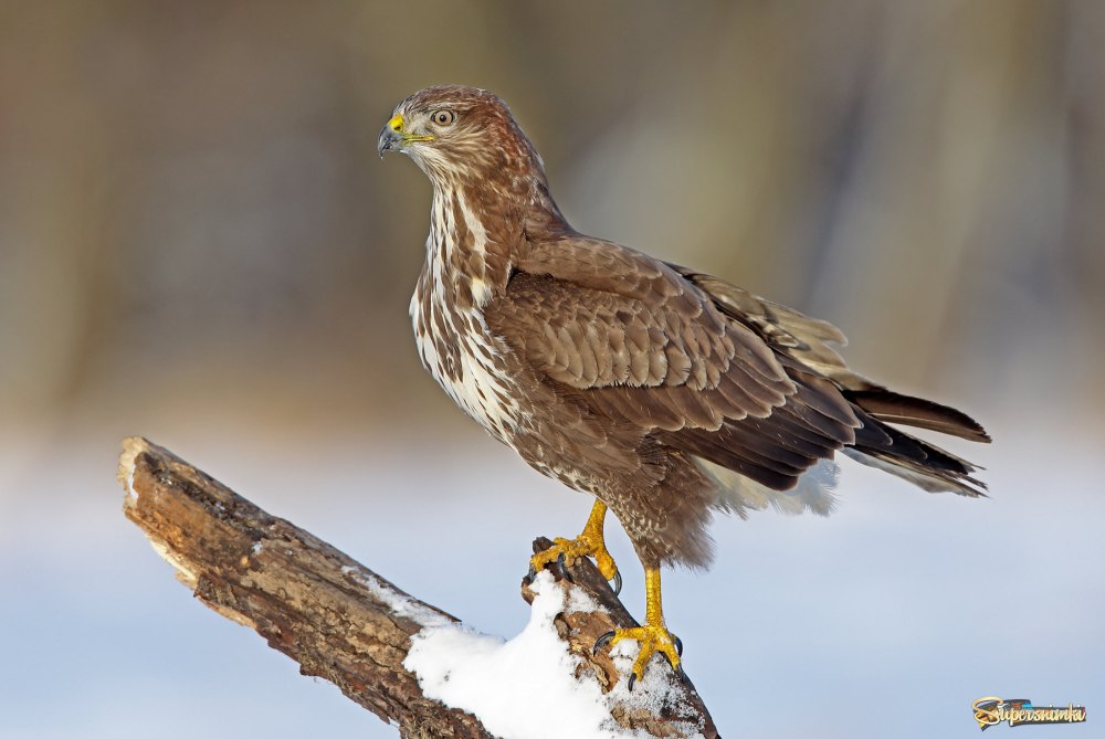 Птица канюк зимой