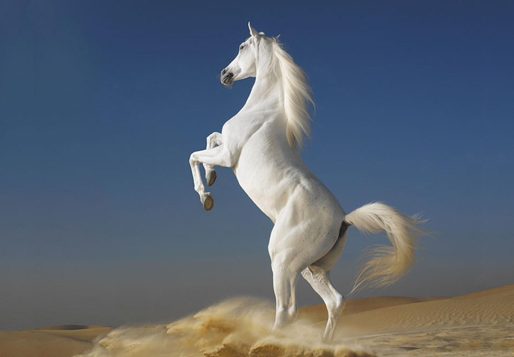 Белая лошадь на дыбах