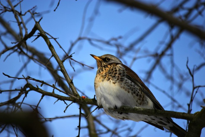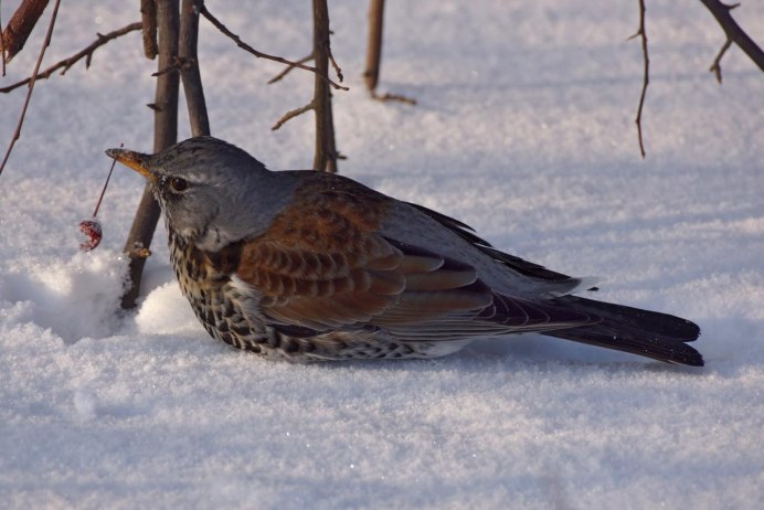 Дрозд рябинник зимой