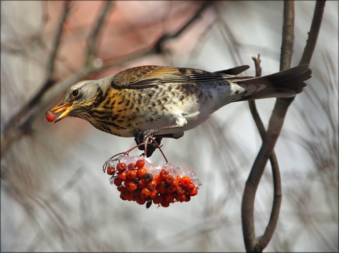 Птицы на рябине зимой Дрозд рябинник