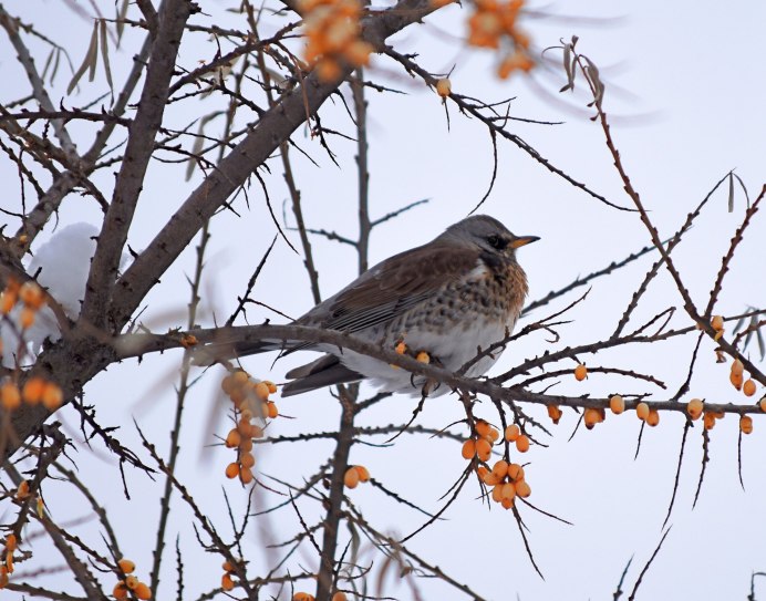 Дрозд-рябинник фото зимой