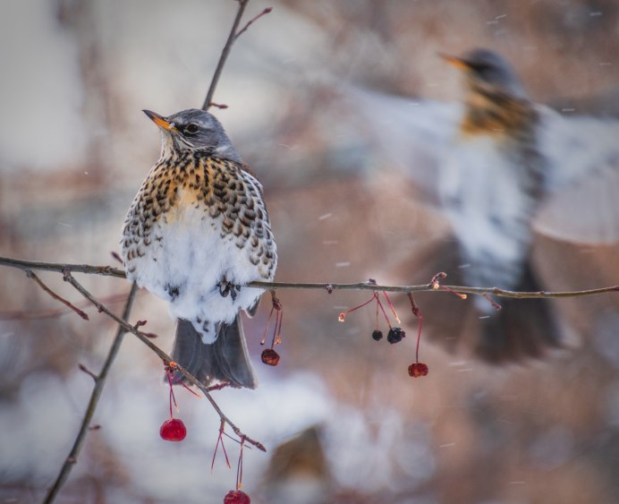 Дрозд рябинник птица зимой