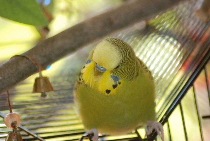 Волнистый попугайчик его клетка
