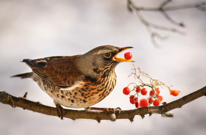 Дрозд рябинник зима