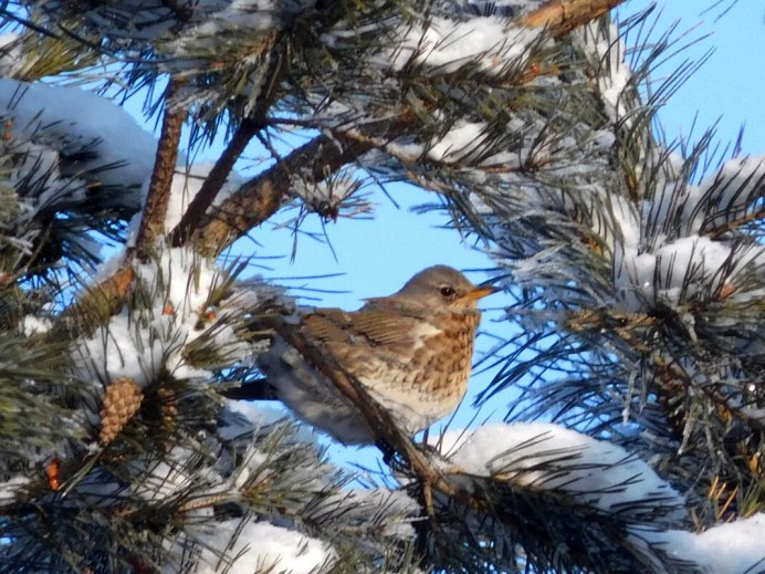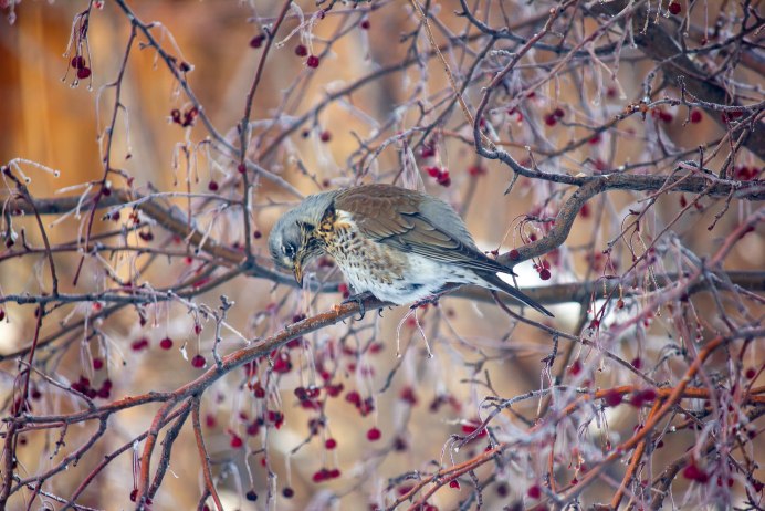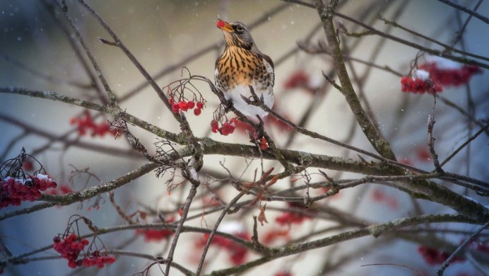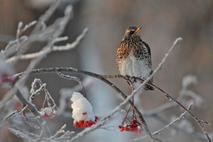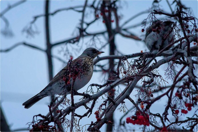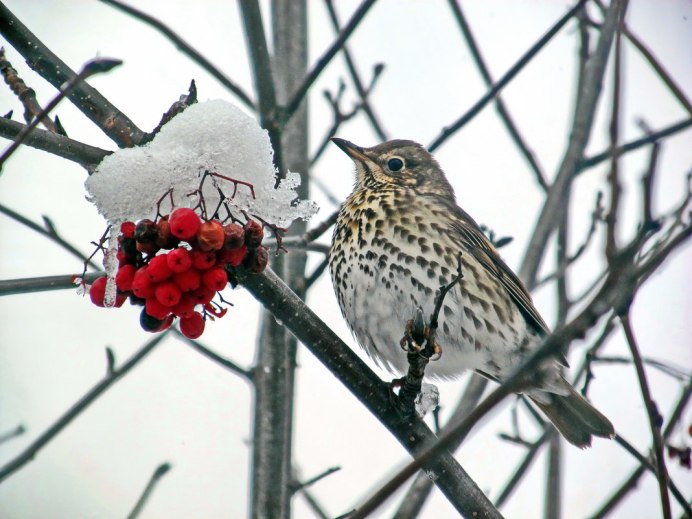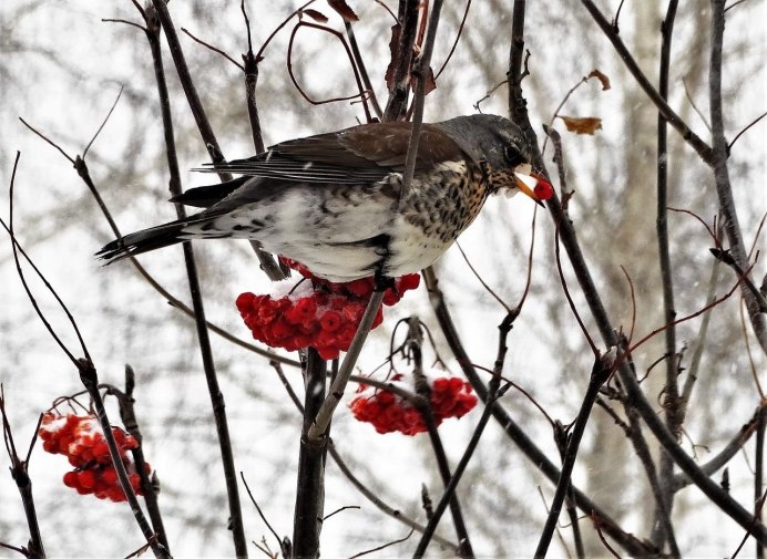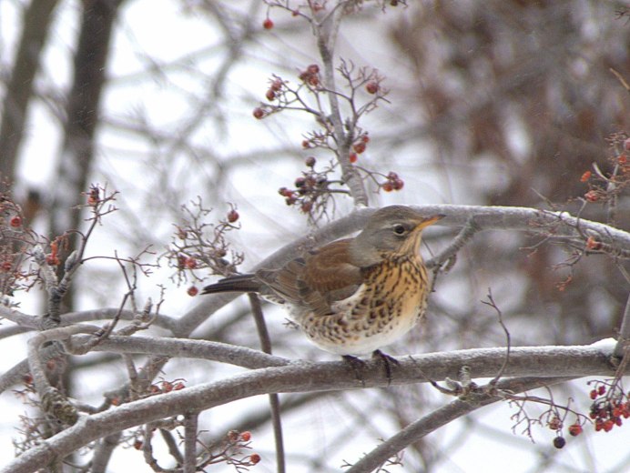 Дрозд рябинник зимой