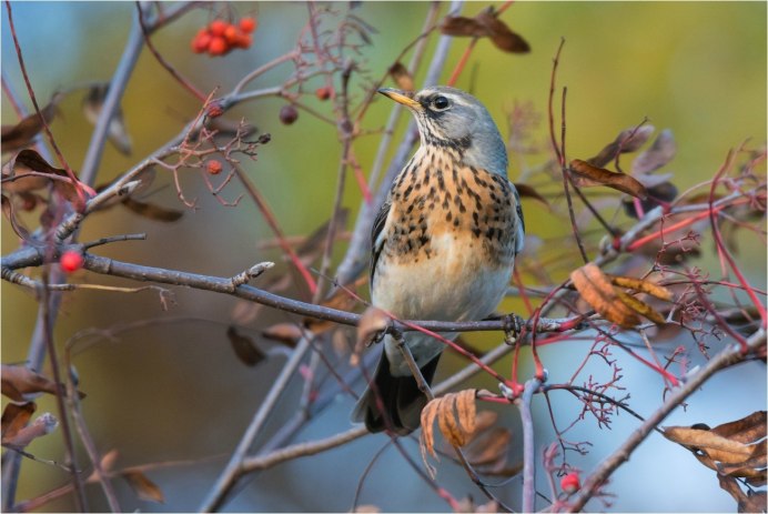Дрозд рябинник осенью