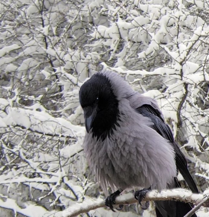 Нахохлившаяся ворона
