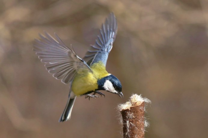 Синица лазоревка в полете