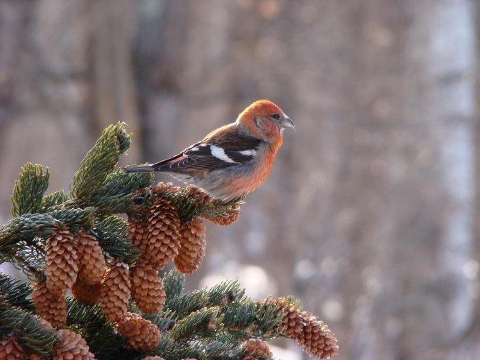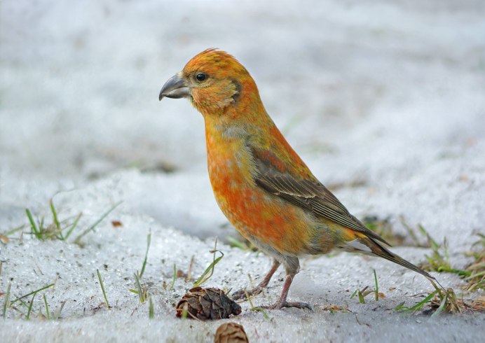 Птицы клест обыкновенный зимой