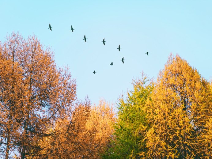 Птицы в небе осенью