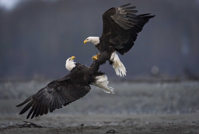 Белоголовый Орлан на охоте