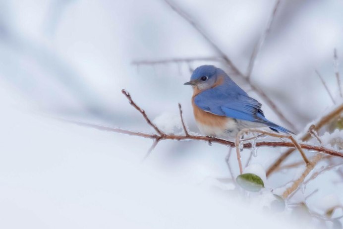 Голубая птица с красным клювом