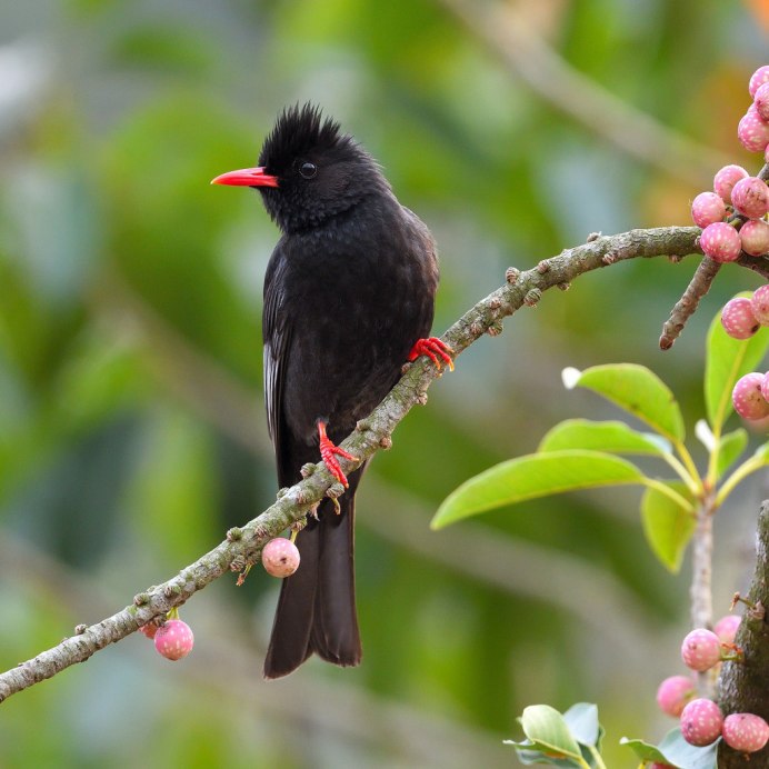 Черная птица с красным клювом