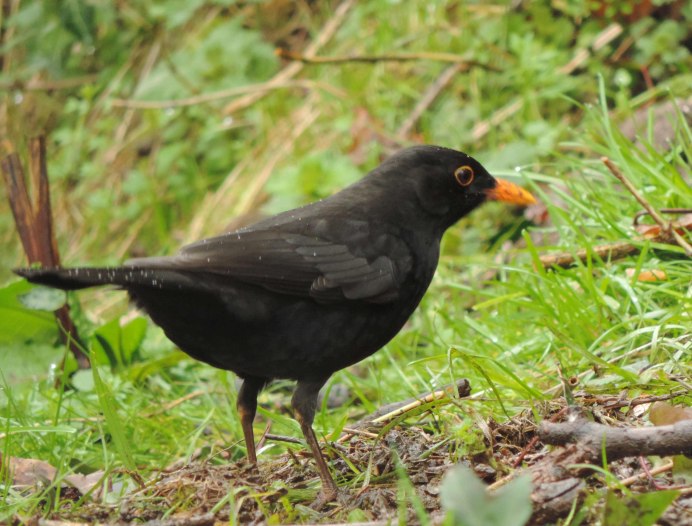 Черный Дрозд с красным клювом