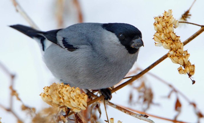 Серая птичка с черной шапкой