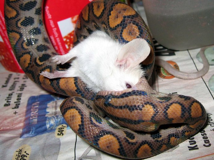 Песчаный удавчик ест тушканчиков