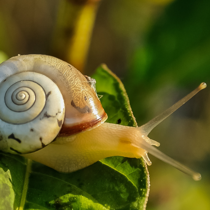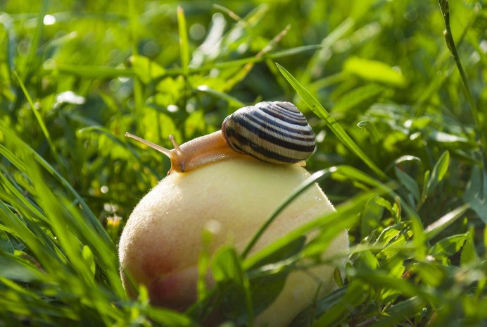 Фотосессия с улиткой в саду