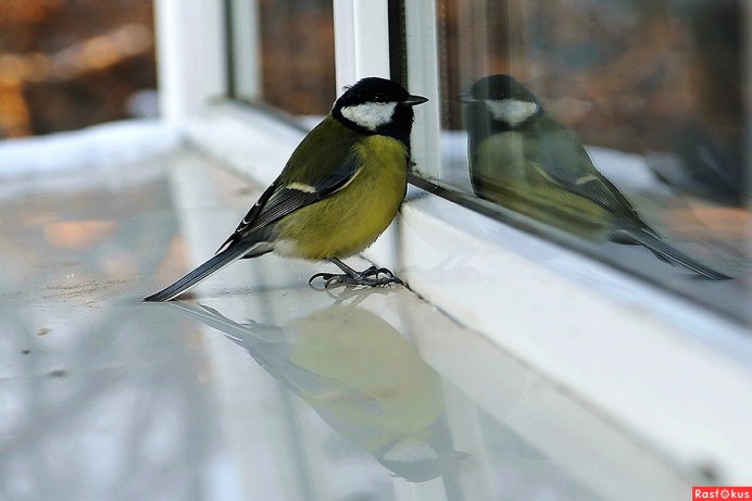 Синица на подоконнике