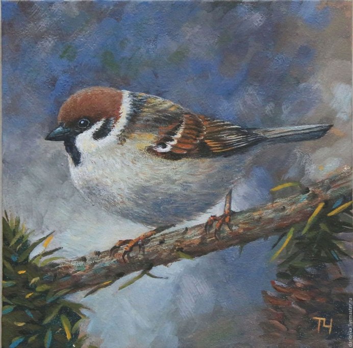 Воробей гуашью