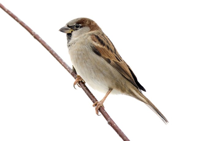 Воробей на белом фоне
