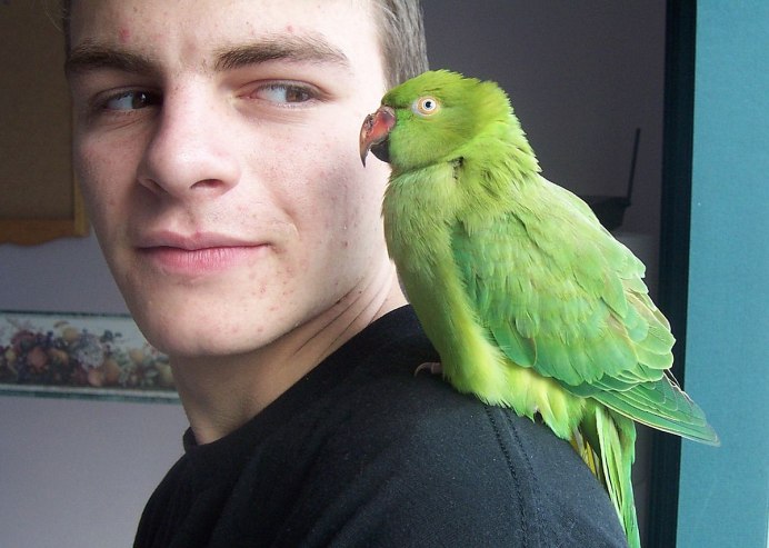 Ожереловый попугай фото мальчика