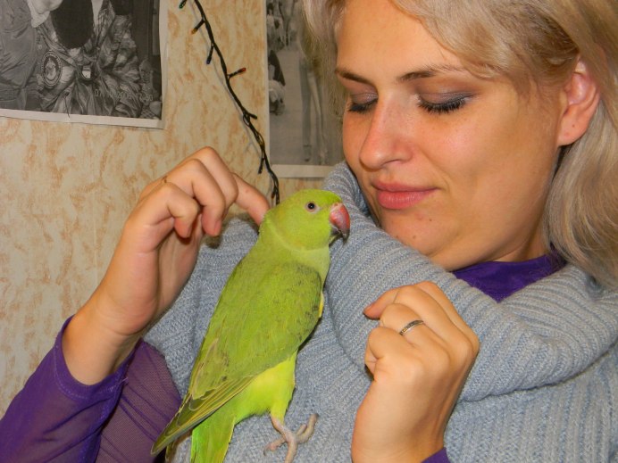 Ожереловый попугай дома