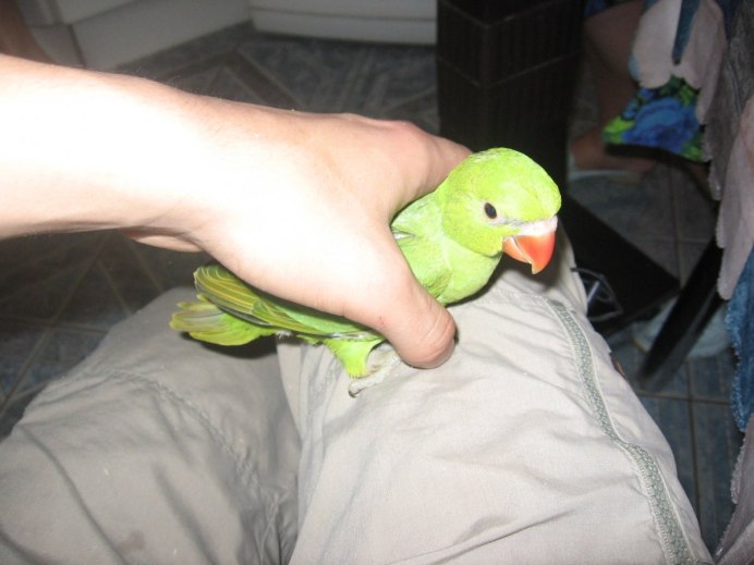 Ожереловый попугай ручной