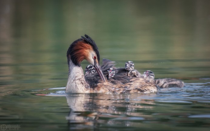 Утка чомга с утятами