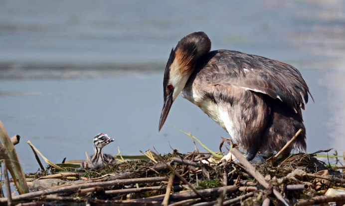Большая поганка чомга птенец