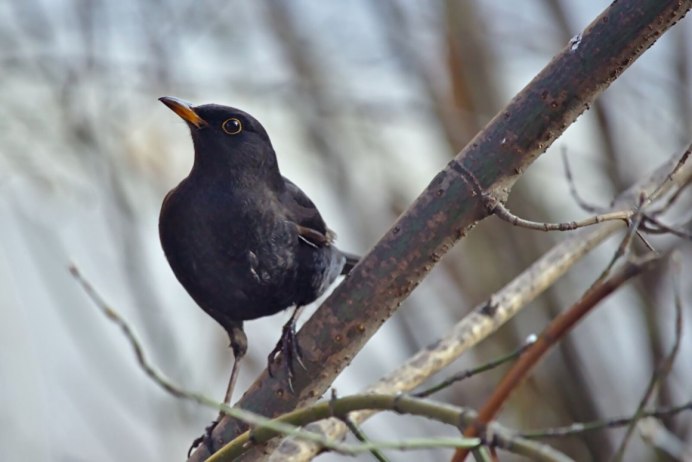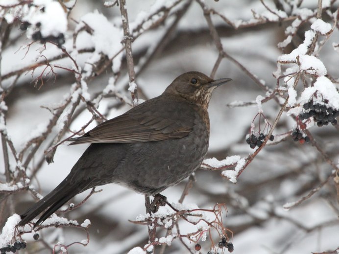 Чёрный Дрозд фото птицы зимой