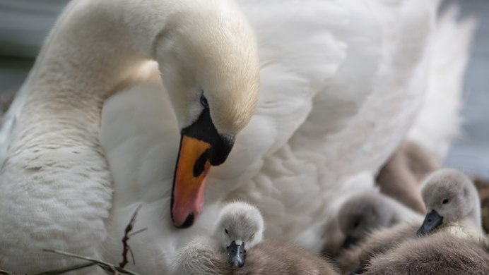Лебедь с лебедятами